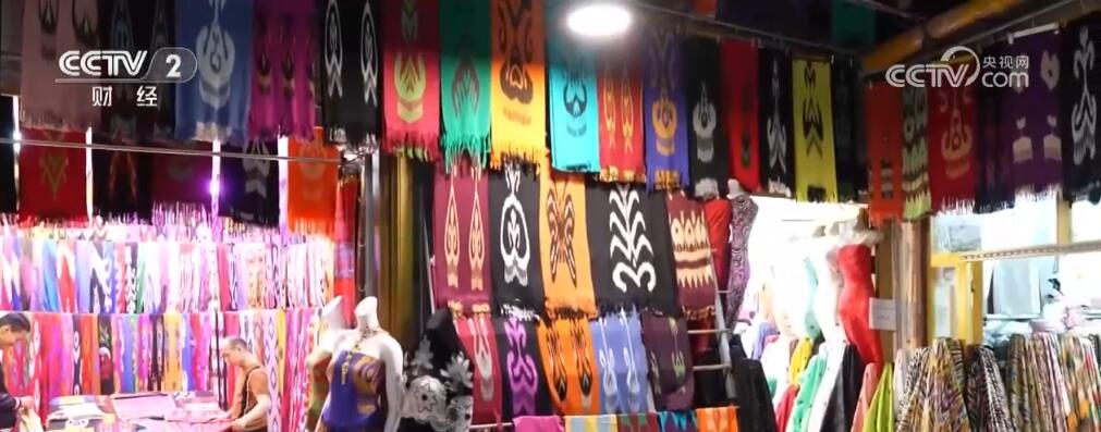 在总台2024年春晚舞台上,演员们身穿特色服饰进行表演,惊艳全场。春晚过后,慕名前来购买和定制艾特莱斯服饰的游客不断增加。努尔·买买提原本在当地经营一家数码产品店铺,看到旅拍店艾特莱斯服饰等传统民族服装的租赁和定制需求增加,他便在喀什古城开了一家民族服装综合店。