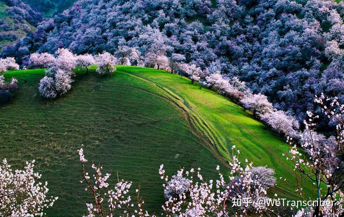 中国杏花之乡,莫过于新疆伊犁的杏花沟。每年3月底、4月初的时候吐尔根乡朝阳的山坡上3万多亩的杏花开满山坡。铺天盖地的粉色花海,漫上山坡、深入沟谷,既有江南的温柔娇丽,又有西域的万丈豪情。