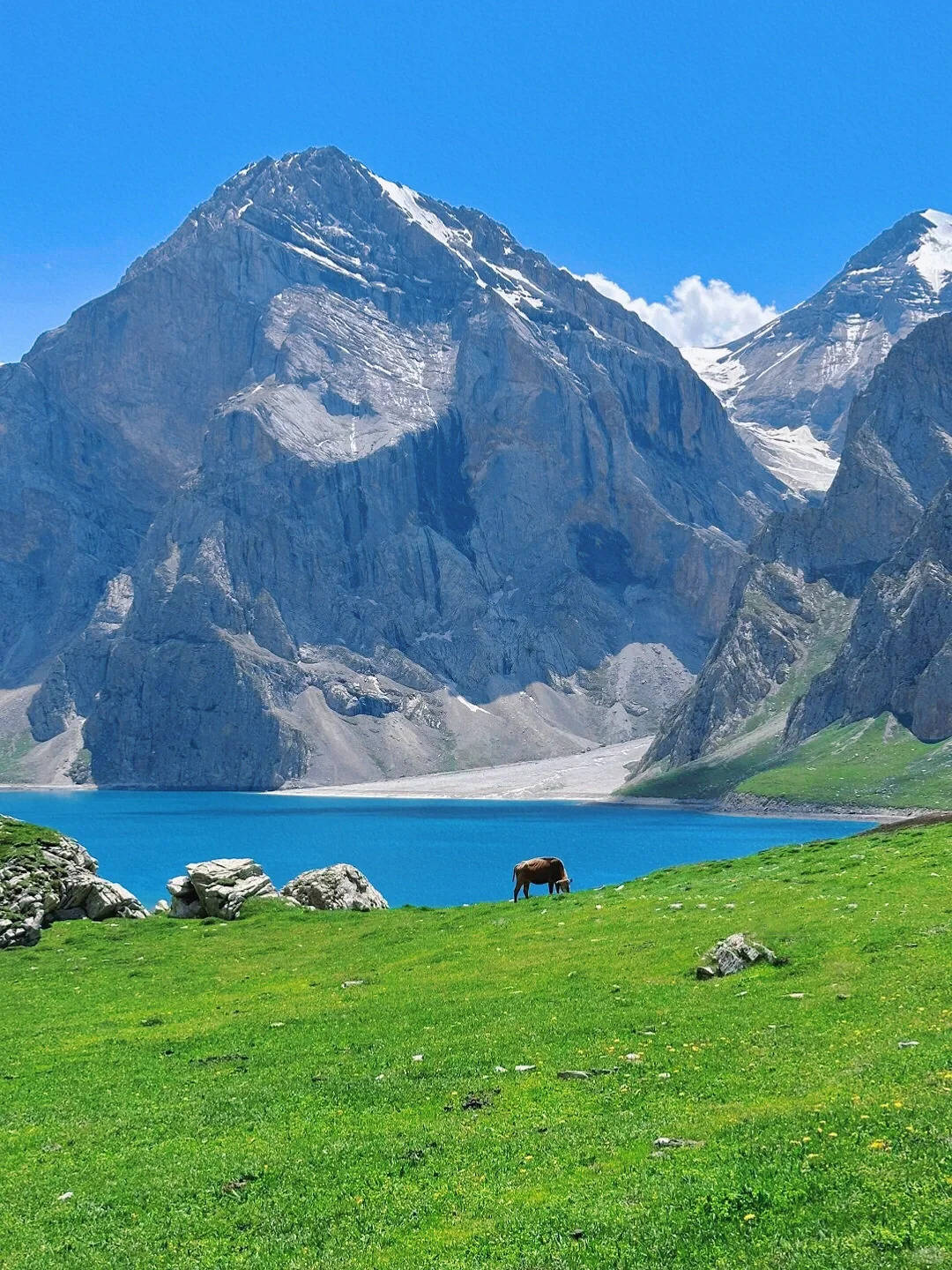 湖水颜色随着天气变化,晴天时蓝得透彻,阴天又像是蒙着一层薄纱。自驾环湖一圈,沿途的野花和雪山背景怎么都看不够。