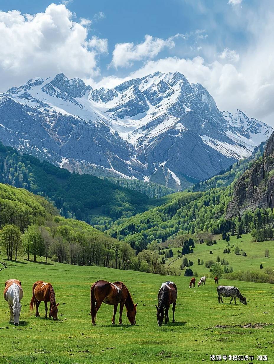 夏天的风一吹过,草原就掀起层层绿浪,远处的雪山和哈萨克族的白色毡房交相辉映。骑马穿越空中草原,体验牧民生活时别忘了尝一口现挤的马奶子。