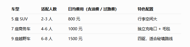 1. 选对车型:按人数匹配,费用透明