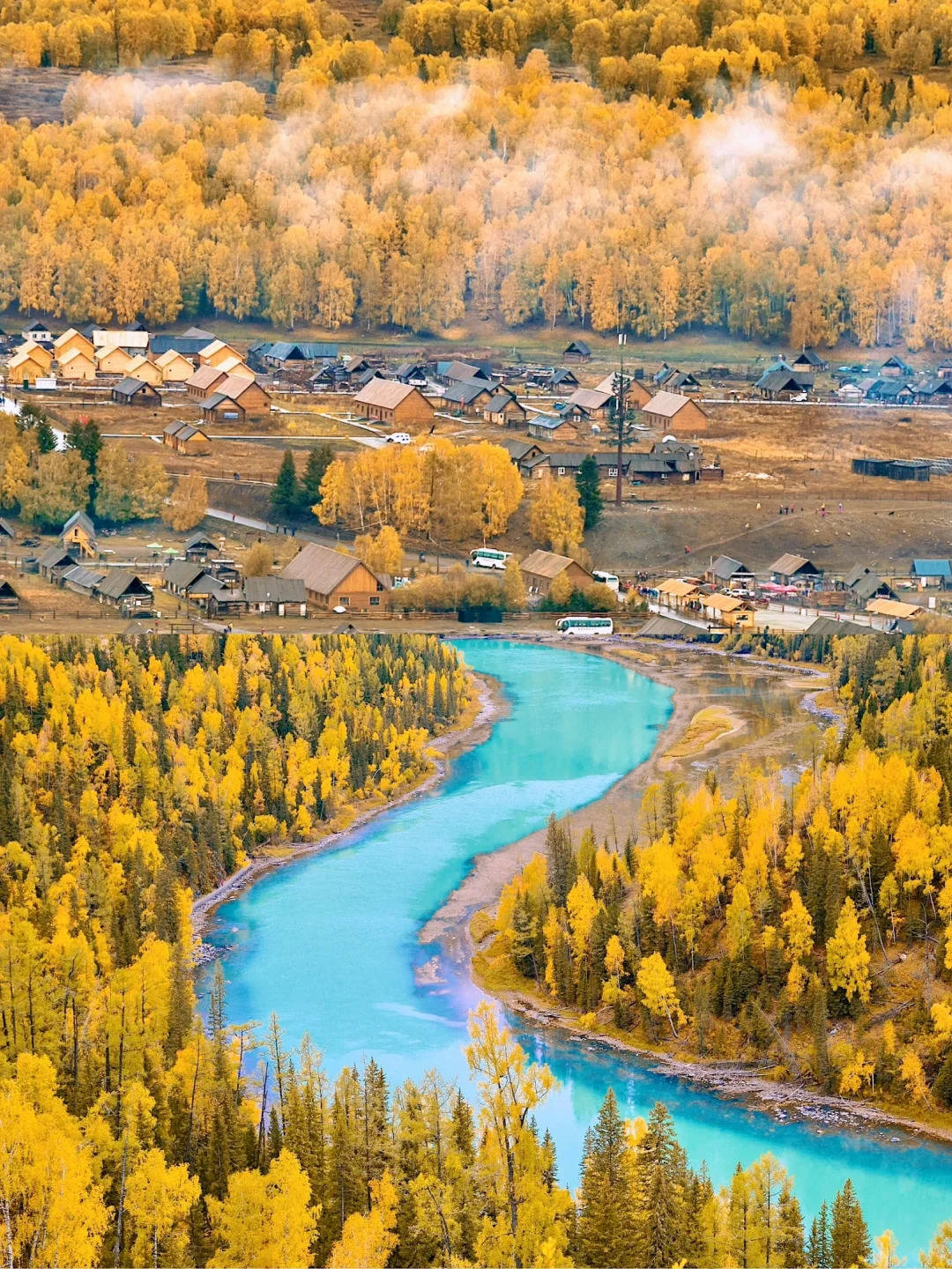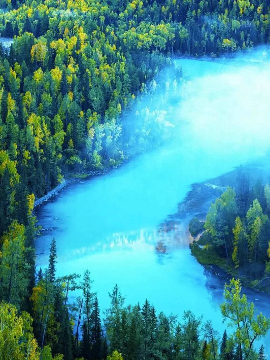 1️⃣ 喀纳斯湖:神仙用调色盘打翻的湖水,秋天层林尽染,冬天雾凇仙境,游船徒步双倍快乐
