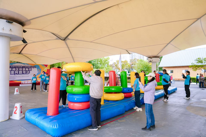本次嘉年华精准设计了“残健融合徒步赛”与四大“团体趣味项目”。一公里的滨江徒步不计时,却充满了欢笑与鼓励。而精心设计的团队项目,更侧重于队员间的信任与协作:“运动大脑”考验策略与配合,“穿越雷阵”需要绝对的信任与沟通。每一个环节都让融合从口号化为行动,在互动中深化理解,在协作中凝聚共识。