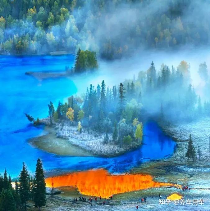 一到秋天喀纳斯就变成了七彩的画布湖水的色彩变幻莫测