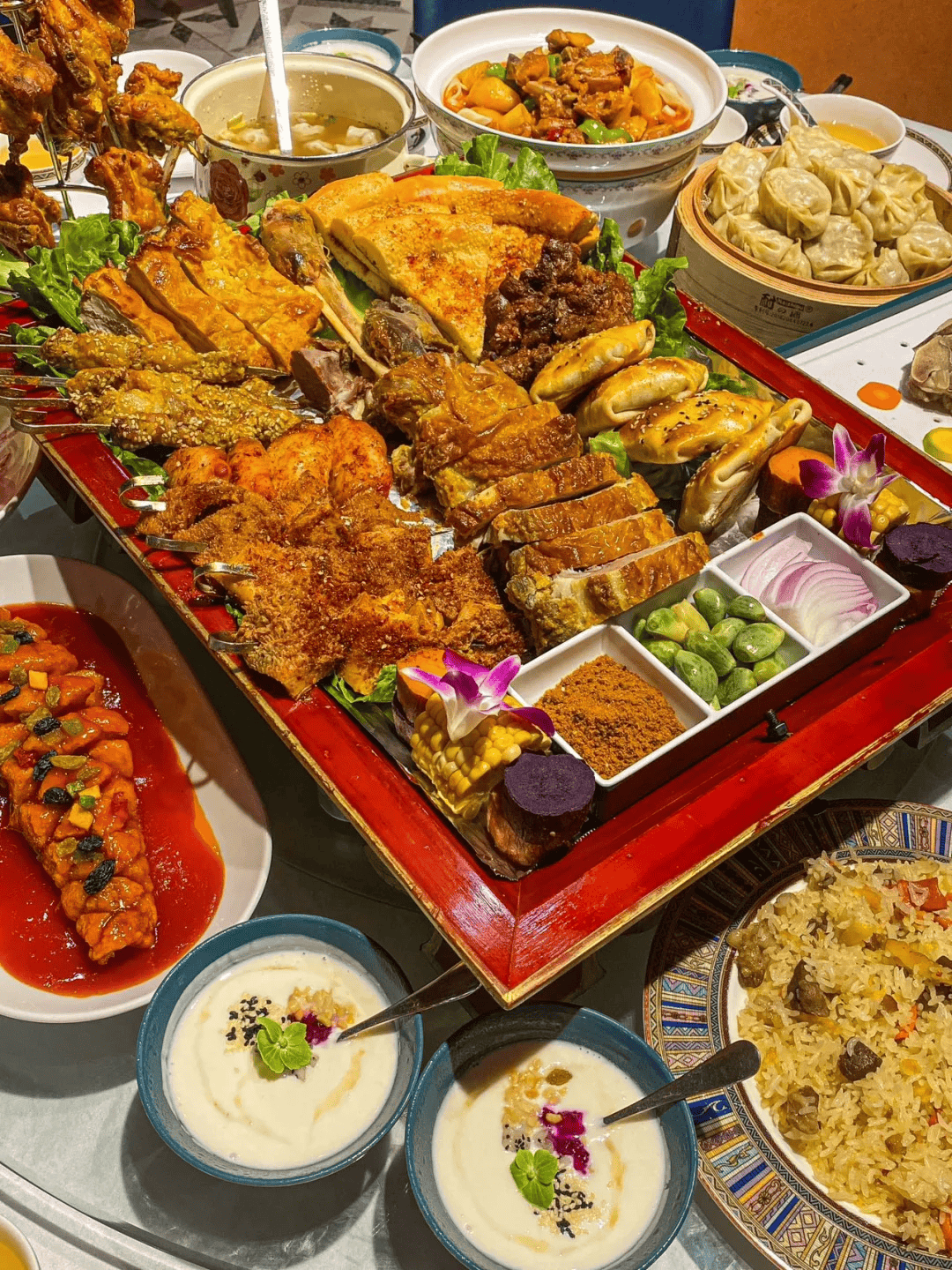 烤包子:外皮酥脆,内馅鲜美,领馆巷烤包子必吃。大盘鸡:鸡肉鲜嫩多汁,土豆软糯入味,辣而不燥。手抓饭:大米、羊肉、胡萝卜搭配,营养丰富,搭配酸奶更佳。冷水鱼宴:可可托海推荐,鱼肉鲜嫩,汤汁浓郁。手工冰淇淋:喀赞其巷子里的蓝色小车,口感细腻,奶香浓郁。