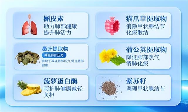 此外,复配的紫苏梓、桑叶提取物以及菠萝蛋白酶、利用菠萝蛋白酶促进物质吸收的特性,使槲皮素的生物活性达到 99.8% 的峰值,吸收效率更是提升了 45 倍,这一数据在业内表现突出。建起一套集精准抗炎、黏膜修复和全面抗氧化于一体的肺部立体养护体系。