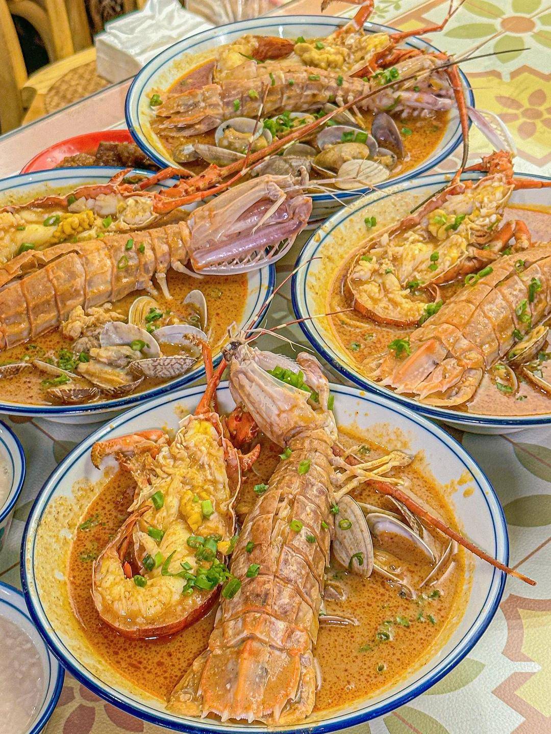 🏯南普陀寺早课祈福后直奔素饼工坊,6元/盒现烤椰子味全网零差评。穿过厦门大学芙蓉隧道,打车8元直达中山路。划重点👉🏻小田带的团能用团体价吃“醉壹号”海鲜大排档,288元套餐里有手臂长的波斯顿龙虾!