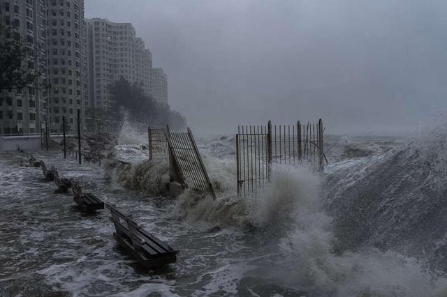 9月24日,香港,超强台风“桦加沙”逼近,杏花邨海滨掀起巨浪。视觉中国供图