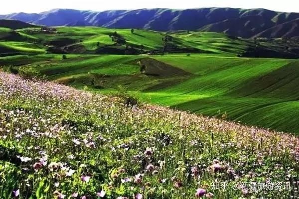 伊犁的草原风景区,都是处在东西走向的河谷地带,唯独伊犁巩留县东部山区的“库尔德宁”,是在一条南北走向的山间阔谷。库尔德宁草原上山花烂漫,牛羊蠕动,群马奔腾,处处都是动人景象。