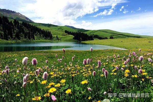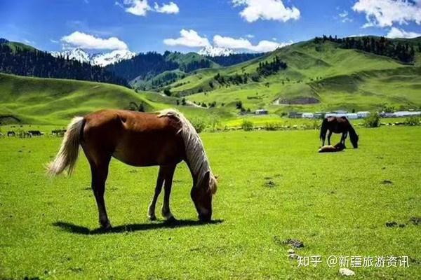 每年6-9月是新源县巩乃斯草原的黄金旅游季节,辽阔的草原,美丽的山岗、群群牛羊和点点毡房构成草原之夏的生活圈。
