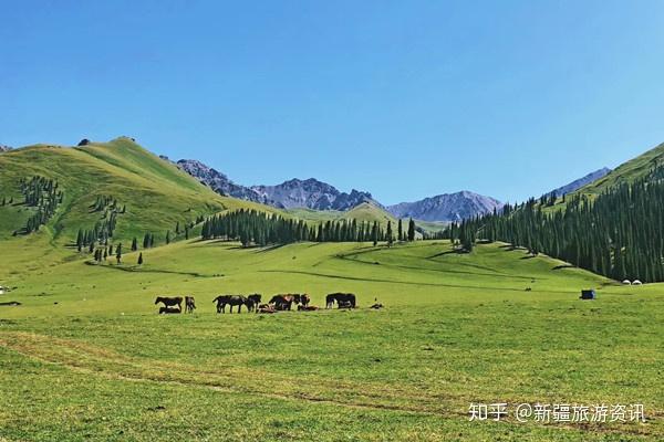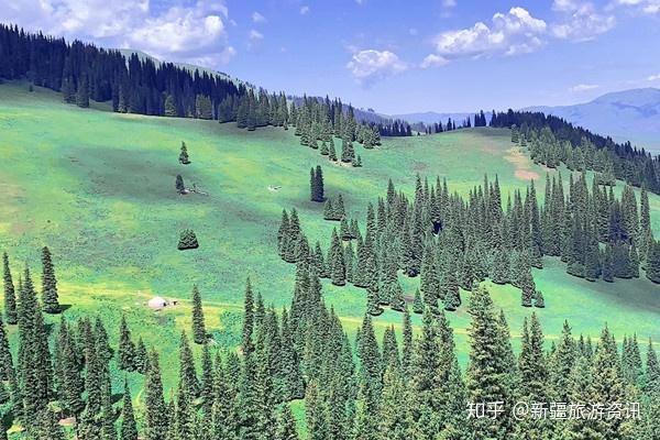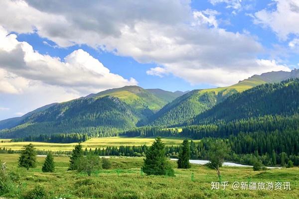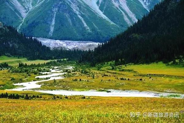 大美新疆绿色的草原、蓝色的河流、白色的冰川、雄伟的天山,刚直不阿的青松,形成了非常优美的自然景观。