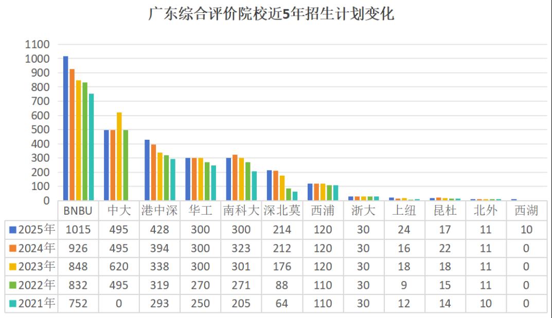 说综评是高考的重要通道,是因为越来越多大学综评招生的比例越来越大。例如中大2025年综评招生人数达到495人,北师大浸会从2021年的692人上升到2025年的1015人,南科大2025年297人、港中深2025年428人。
