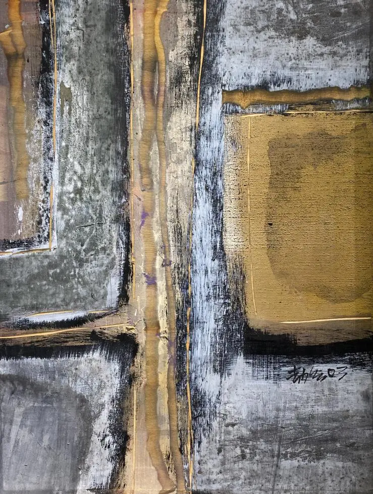 作为写实油画的高手,魏景山的人物画形象细致明朗,色彩温暖,抒情含蓄且充满人文气息,难能可贵的是,他能从中跳脱,积极探索当代语境下的抽象表达。他的抽象油画不是情绪的无序宣泄,而是有边界的自由表达,超越了外在的图式形态,融入当代的审美情趣。色彩关系的对比推进了平面的纵深感,点、线、面构成作品的生动气势,大象无形,进而走入想象性的意境。
