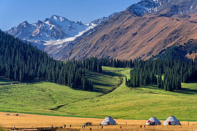 报道提到,中国西北地区的新疆与八国接壤,作为古丝绸之路枢纽,这里历史文脉绵长,既有壮丽雄奇的雪山峡谷,又有水草丰美的草原湖泊。白雪皑皑的山脉、深绿色的森林、草原上的鲜花和戈壁沙漠吸引着全球无数热爱自然的旅行者。